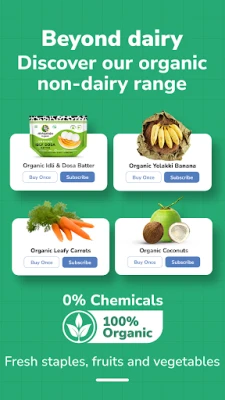 Akshayakalpa on Intian ensimmäinen sovellus, joka esittelee sertifioitua luomumaitoa ja muita luomutuotteita. Tutustu laajaan valikoimaan korkealaatuisia luomuelintarvikkeita, jotka on valittu huolellisesti Intian parhailta tiloilta. Löydä luotettavat luomuvaihtoehdot jokapäiväisiin tarpeisiin.