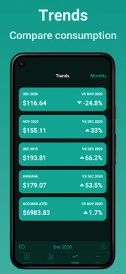 Sovellus sukeltaa syvälle tietoihin tuoden esiin yksityiskohtaiset tilastot ja visualisoimalla kulutuksesi kehityksen. Se tukee monitariffimittareita, erittelemällä selkeästi päivä- ja yökulutuksen, jotta saat täsmällisen kuvan kustannuksista. Integroidut muunnostoiminnot, kuten kaasun kuutiometrien muuntaminen kilowattitunneiksi, tekevät eri energiamuotojen vertailusta vaivatonta. Voit jopa luoda omia laskentakaavoja kulutuksen seurantaan, mikä tarjoaa vertaansa vailla olevaa räätälöintikykyä. Lisäksi, voit ryhmitellä eri mittareita ja seurantakohteita nähdäksesi kokonaiskuvan tai vertailla eri alueiden kulutusta.
