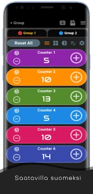 Mukautuksen ydin on täysin käyttäjän säädettävissä. Määritä jokaiselle laskurille oma aloitusarvo, kasvatus- ja vähennysaskel, ja jopa aseta yksilöllinen nollauspiste. Visuaalinen ilme on myös hallinnassasi, sillä voit valita laajasta väripaletista ja vaihtaa vaalean tai tumman teeman välillä mielesi mukaan. Laskurien ja ryhmien uudelleennimeäminen ja uudelleenjärjestely tekevät monimutkaistenkin projektien hallinnasta suoraviivaista ja selkeää, pitäen kaiken järjestyksessä juuri haluamallasi tavalla. Hallitse laskurijärjestystäsi ja ryhmittele niitä loogisesti parhaan käyttökokemuksen varmistamiseksi.