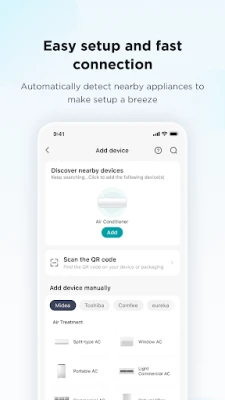 SmartHome mullistaa tapasi hallita kodin älylaitteita, tuoden ennennäkemättömän yhdenmukaisuuden Midean, Eurekan, Pelonisin, Comfeen, Master Kitchenin, Artic Kingin ja MDV:n laitteisiin. Tämä kattava alusta korvaa aiemmat MSmartHome- ja Midea Air -sovellukset, esitellen täysin uudistetun käyttöliittymän ja virtaviivaistetun käyttökokemuksen, joka nostaa älykodin hallinnan uudelle tasolle. Koe saumaton yhteys ja intuitiivinen ohjaus, joka tekee arjestasi vaivattomampaa.